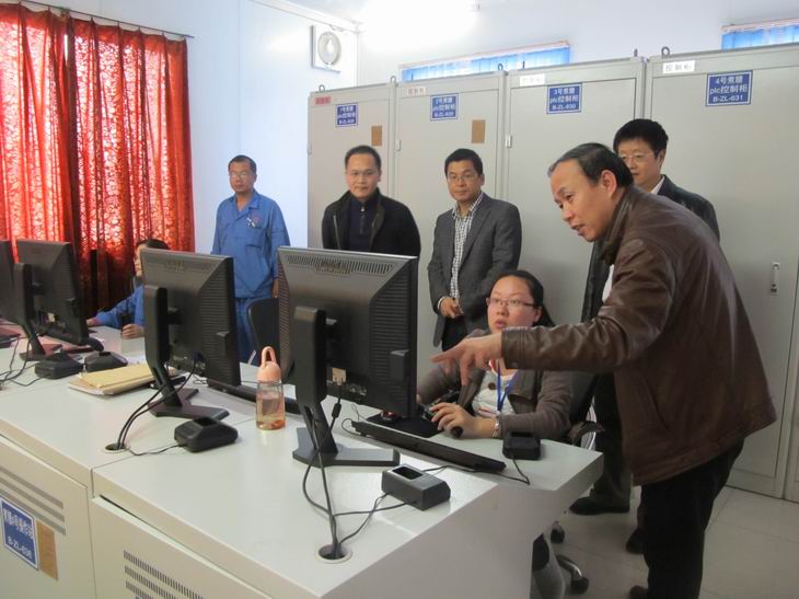 隨后,慰問(wèn)組在柳興制糖公司總經(jīng)理覃盛樂(lè)等領(lǐng)導(dǎo)的陪同下,深入生產(chǎn)車間了解當(dāng)前榨季生產(chǎn)情況。圖為:糖業(yè)集團(tuán)常務(wù)副總經(jīng)理梁逸(左三)及慰問(wèn)組成員在生產(chǎn)車間了解榨季生產(chǎn)情況。(廖春翠攝影報(bào)道)