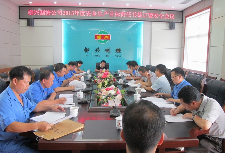 為進(jìn)一步落實(shí)安全生產(chǎn)責(zé)任,強(qiáng)化安全管理。7月16日,柳興制糖公司召開安全生產(chǎn)目標(biāo)責(zé)任書簽訂會(huì)議,與各部室、車間簽訂2013年度安全生產(chǎn)目標(biāo)責(zé)任書。