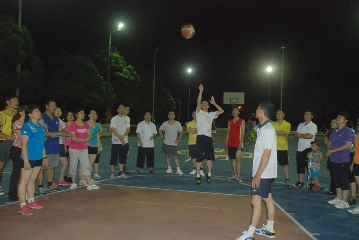 圖為良圻制糖的職工在進(jìn)行投籃比賽的情景。(莫燕選攝影報(bào)道)