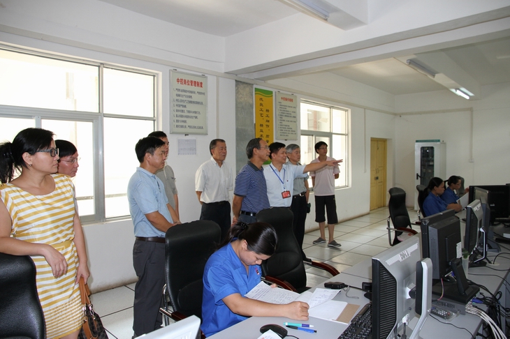 防城港市人大常委會(huì)副主任禤德煥和市人大常委會(huì)副秘書長(zhǎng)黃紅晶、黃民韜,以及市農(nóng)委,防城區(qū)人大、農(nóng)業(yè)局、經(jīng)貿(mào)局有關(guān)領(lǐng)導(dǎo)陪同調(diào)研。圖為調(diào)研組在精制糖中控室參觀(藍(lán)榮�。�