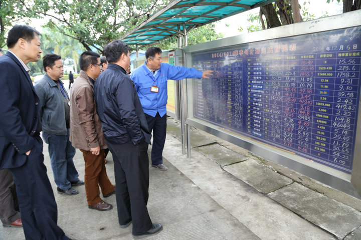 楊海空一行實地深入該公司生產(chǎn)一線,仔細察看了設備運行及產(chǎn)品的質(zhì)量控制等情況。該公司董事長甘耀明匯報了新榨季開榨以來的生產(chǎn)經(jīng)營情況,自11月28日開榨以來,該公司繼續(xù)扎實推進精細化管理主題活動,認真貫徹落實集團榨季動員會精神,積極推行“旬計劃”和“月計劃”管理模式,注重抓好小指標,做到每日指標完成情況上墻,工藝數(shù)據(jù)曲線圖上墻,使各項指標得以有效控制。目前該公司生產(chǎn)日趨穩(wěn)定,農(nóng)務砍運工作運轉(zhuǎn)正常,原料蔗砍運與車間生產(chǎn)趨于平衡,廣大員工工作熱情高漲,產(chǎn)糖率比去年同期提高了0.16%,產(chǎn)品一級率等指標同比均大幅提高。