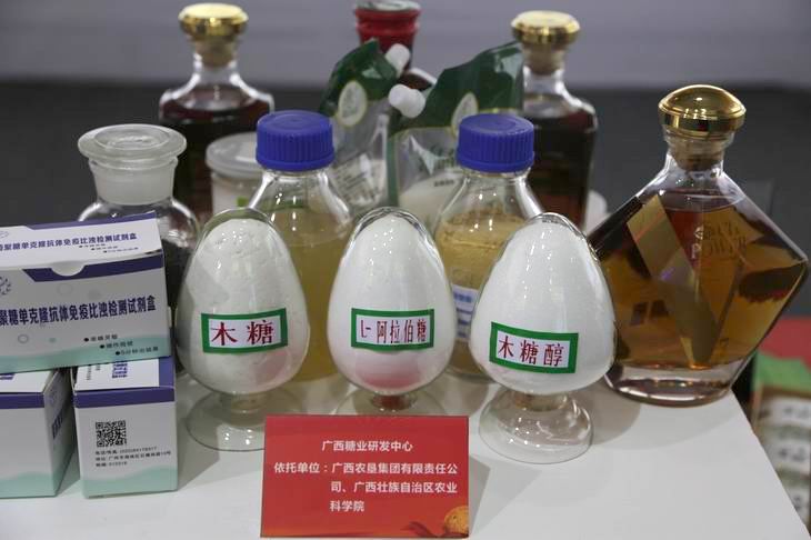 廣西糖業(yè)研發(fā)中心參加本屆科技活動(dòng)周廣西科技創(chuàng)新平臺(tái)建設(shè)成果展示。農(nóng)墾糖業(yè)集團(tuán)的科技創(chuàng)新平臺(tái)、新產(chǎn)品亮相本屆科技活動(dòng)展,展出的科技創(chuàng)新平臺(tái)有廣西糖業(yè)研發(fā)中心良圻基地實(shí)驗(yàn)大樓、甘蔗制糖生物化工中試生產(chǎn)線,展出的產(chǎn)品有2014年推出的city power系列金朗姆酒V5、金朗姆酒V7 、糠醛、復(fù)合微生物肥、葡聚糖酶、葡聚糖單克隆抗體免疫比濁檢測(cè)試劑盒、精制糖小包裝產(chǎn)品、木糖、木糖醇和L-阿拉伯糖等產(chǎn)品。