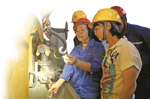廣西糖業(yè)集團(tuán)星星制糖公司員工嚴(yán)把糖膏質(zhì)量關(guān)。 陳 琳/攝