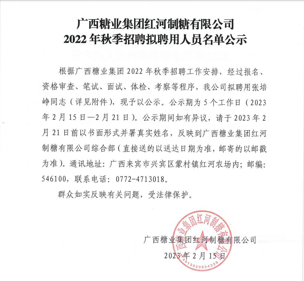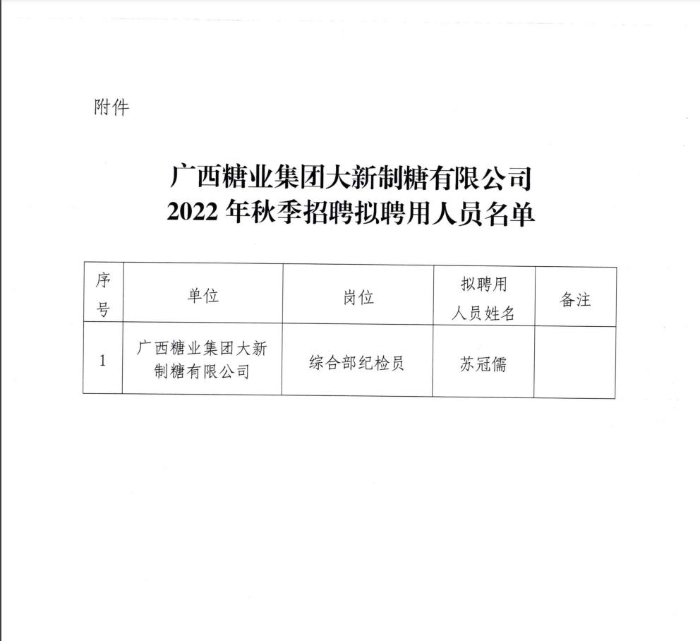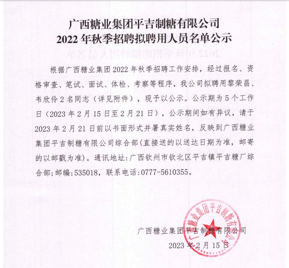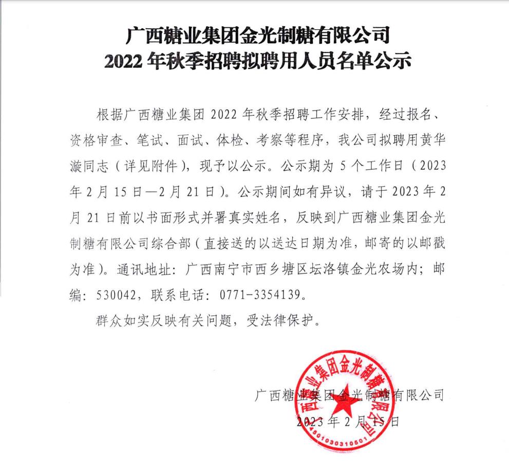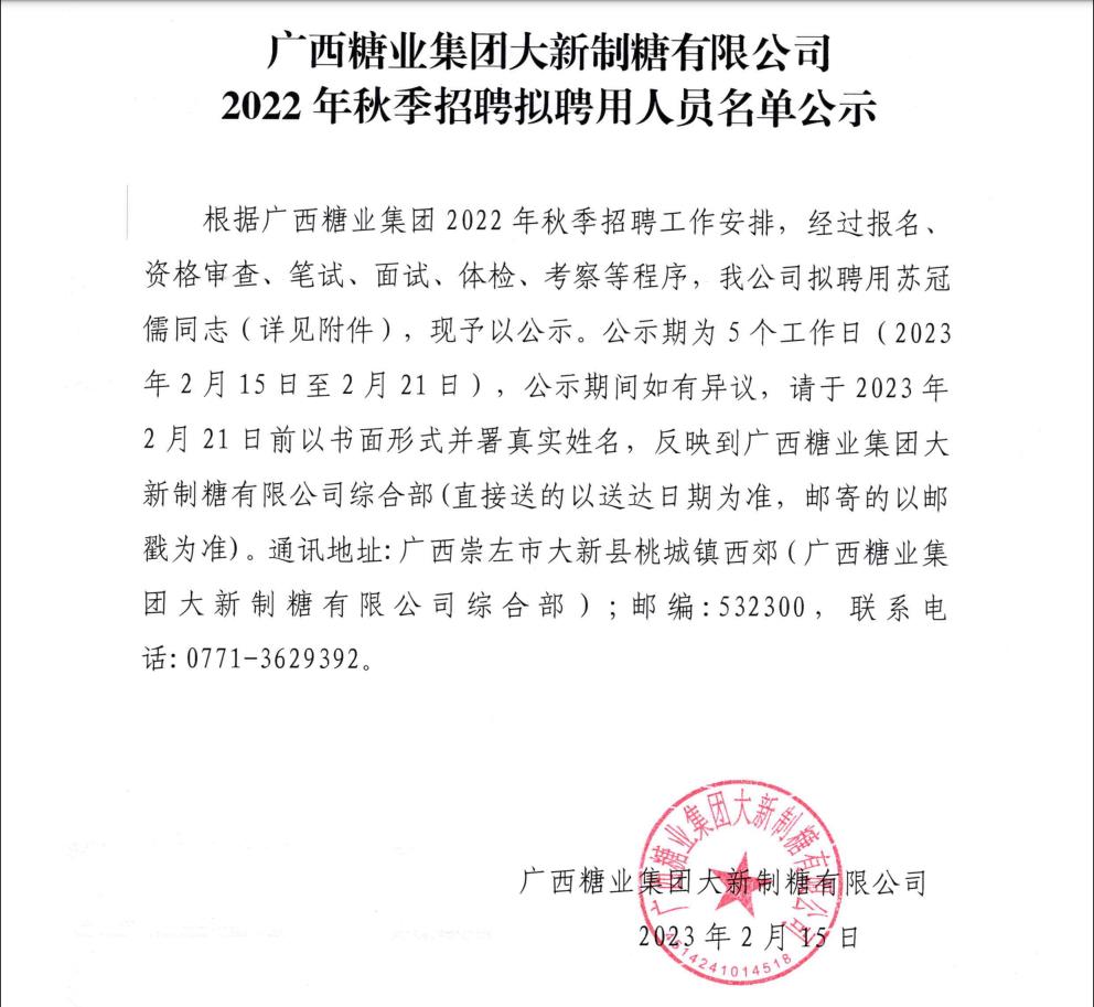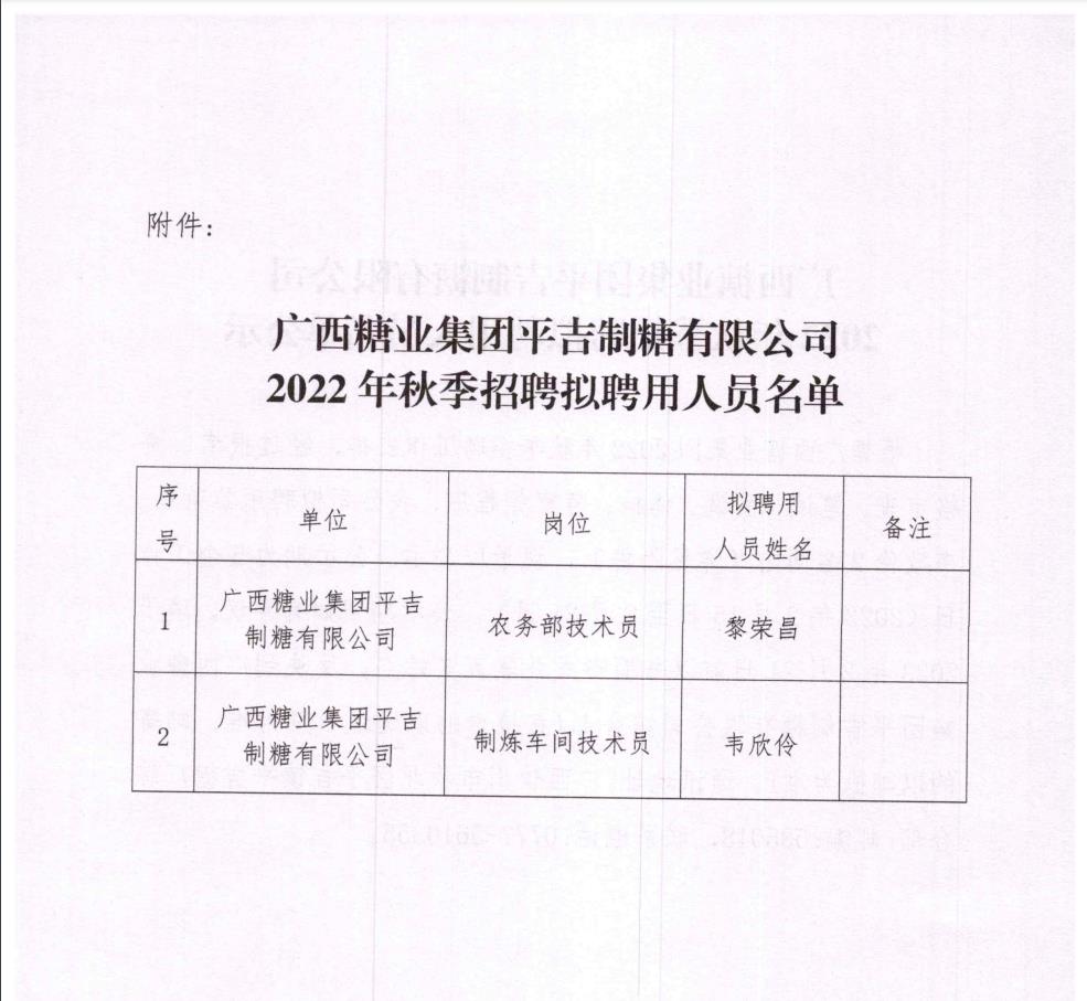 下一篇:廣西糖業(yè)集團(tuán)下屬企業(yè)2022年秋季招聘第二批擬聘用人員名單公示