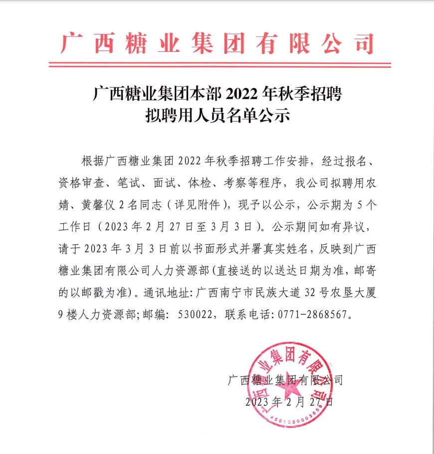 上一篇:廣西糖業(yè)集團下屬企業(yè)2022年秋季招聘第二批擬聘用人員名單公示