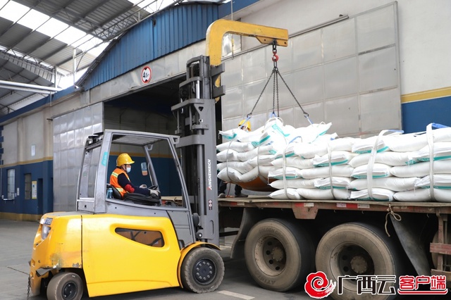 榨季進(jìn)行時(shí),廣西糖業(yè)集團(tuán)良圻制糖公司白砂糖裝車(chē)忙。唐欣 攝