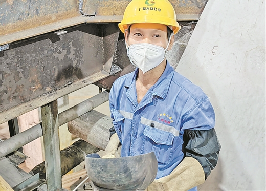 10月11日,廣西五一勞動獎章獲得者張振川準備焊接安裝丙糖分蜜機。 記者 莫 迪/攝