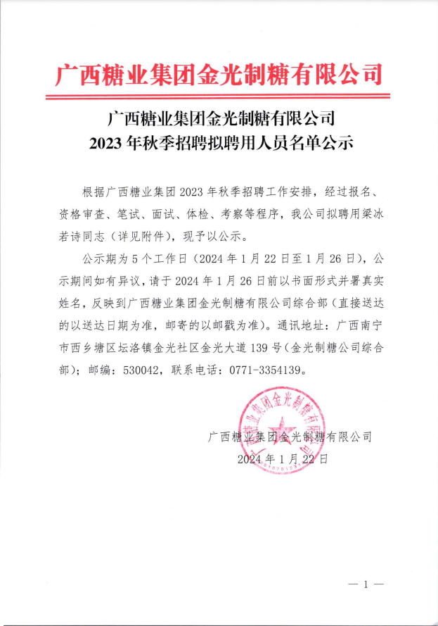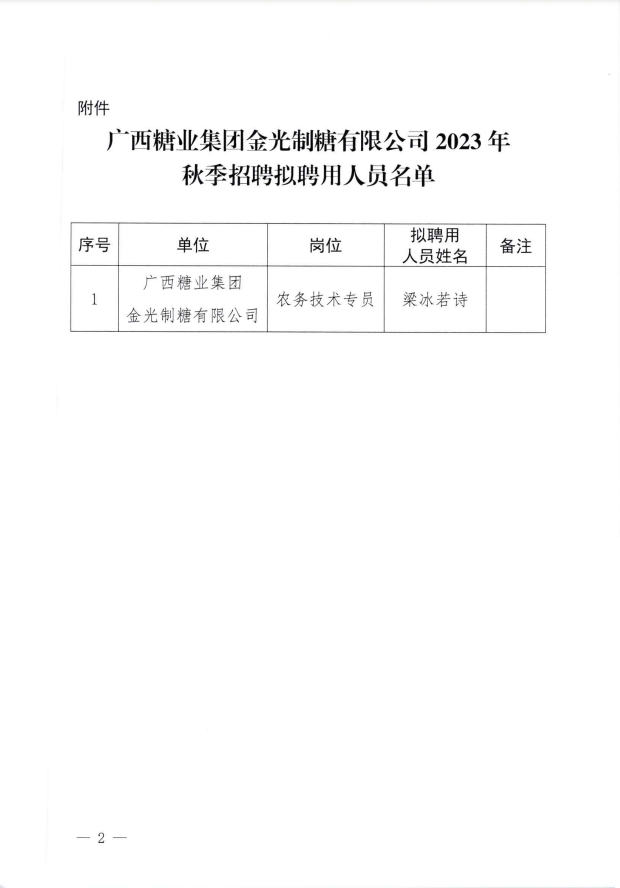 上一篇:廣西糖業(yè)集團(tuán)紅河制糖有限公司2023年度秋季招聘擬聘用人員名單公示