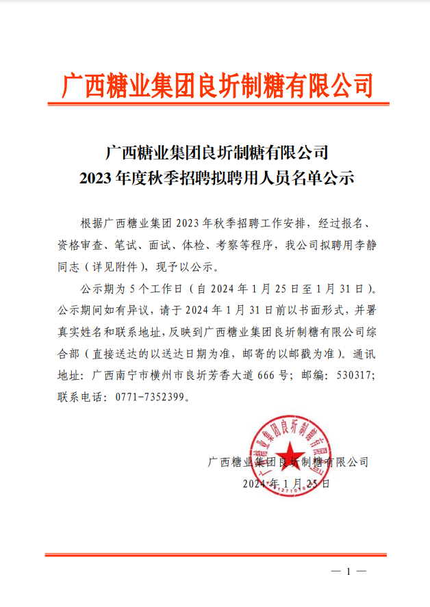 上一篇:廣西糖業(yè)集團金光制糖有限公司2023年秋季招聘擬聘用人員名單公示