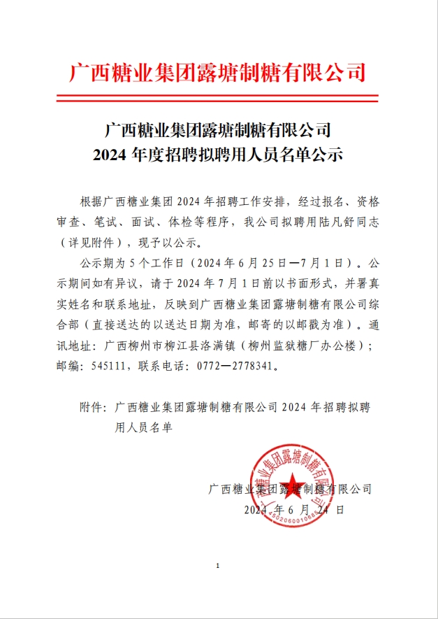 上一篇:廣西糖業(yè)集團有限公司2024年度招聘擬聘用人員名單公示