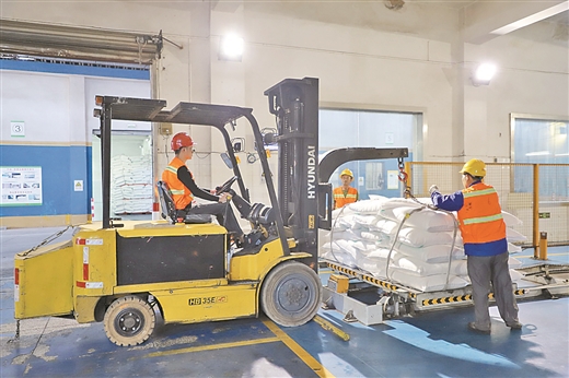 今年春節(jié),廣西糖業(yè)集團(tuán)生產(chǎn)“不打烊”,以時(shí)不我待、只爭(zhēng)朝夕的實(shí)干精神,全力奮戰(zhàn)一季度,奪取“開門紅”,為完成全年各項(xiàng)目標(biāo)任務(wù)奠定基礎(chǔ)。圖為集團(tuán)下屬良圻制糖公司儲(chǔ)運(yùn)工人在搬運(yùn)白砂糖。 江 瑋 唐 欣/攝