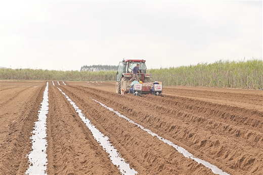良圻制糖公司蔗區(qū)采用機械化種植,加快春耕進度。 黃嘉麗/攝